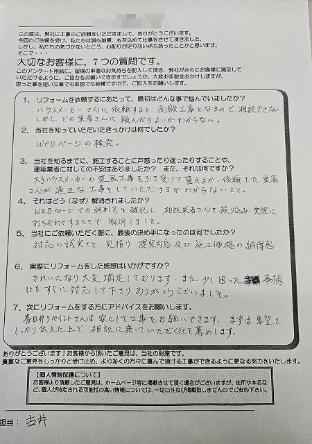 春日井リペイントさんは安心して工事をお願いできます。まずは要望をしっかり伝えた上で相談に乗っていただくことを薦めします。