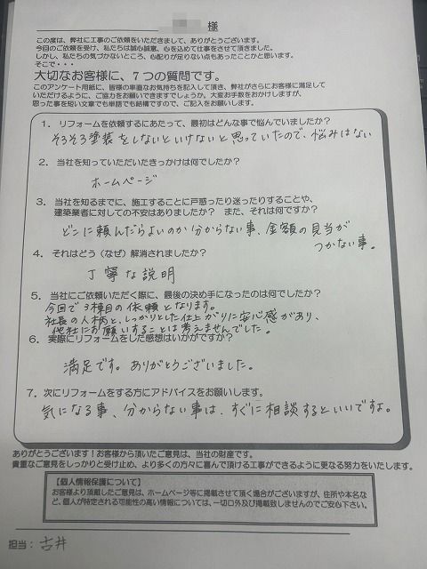 社長の人柄と、しっかりとした仕上がりに安心感があり、他社にお願いすることは考えませんでした。