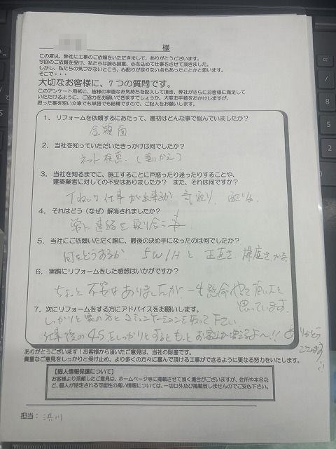 ちょっと不安はありましたが、一生懸命やって頂いたと思っています。